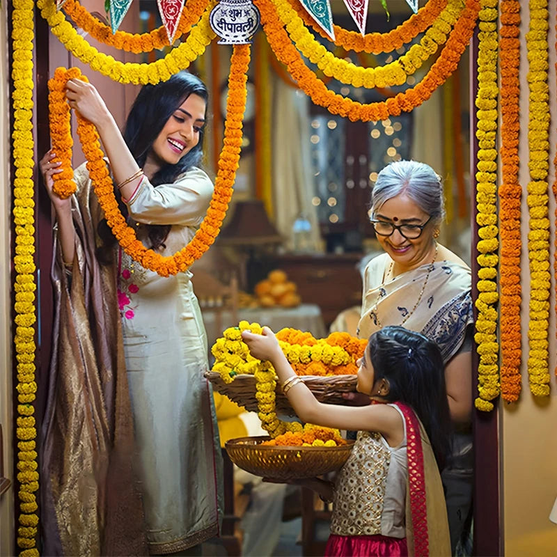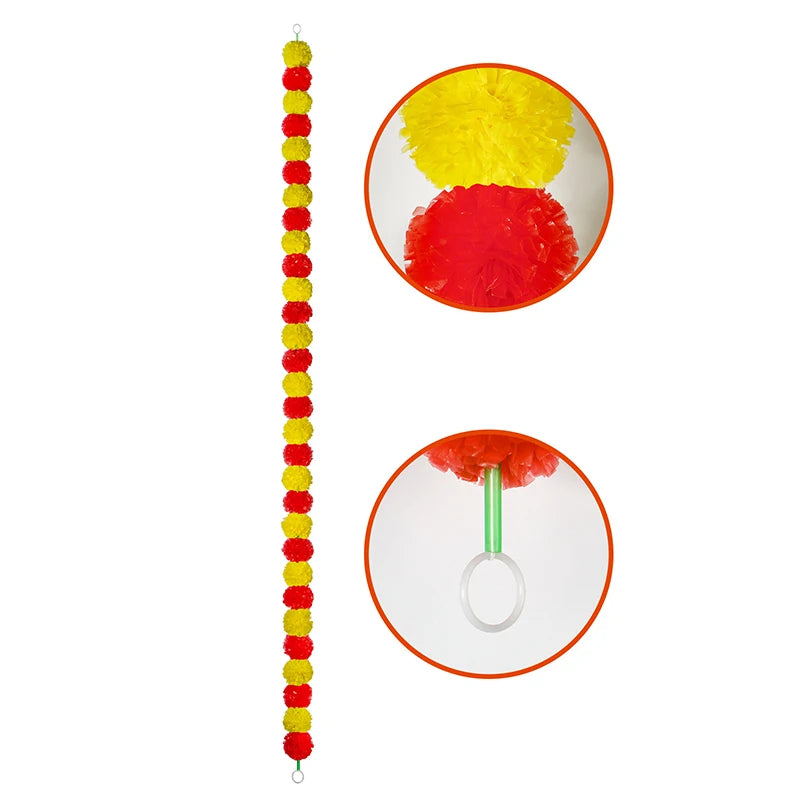 1.5m Marigold Flower Garland Plastic Artificial Flowers Indian Diwali Traditional Festival Wreath Day of The Dead Party Decor