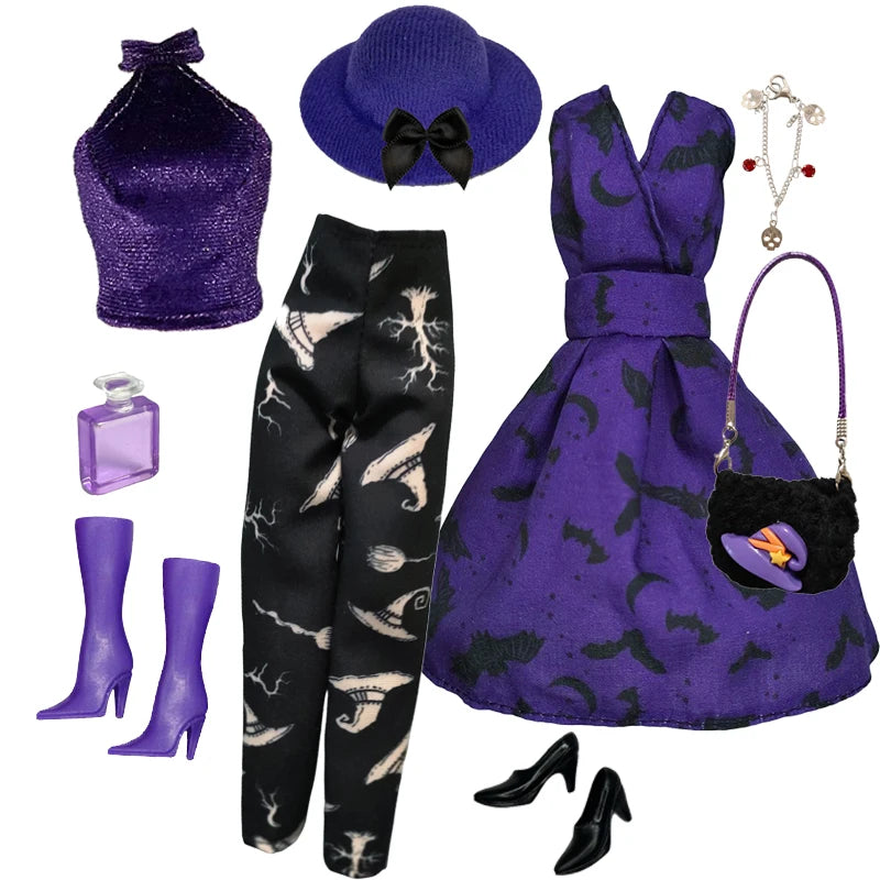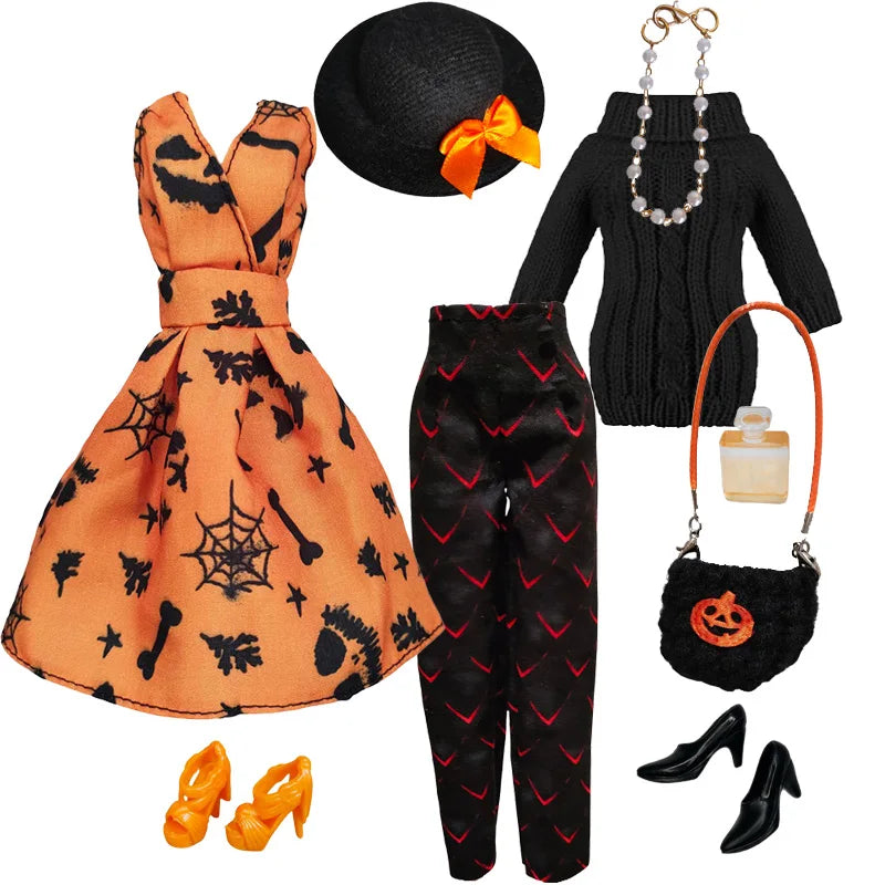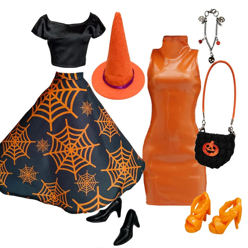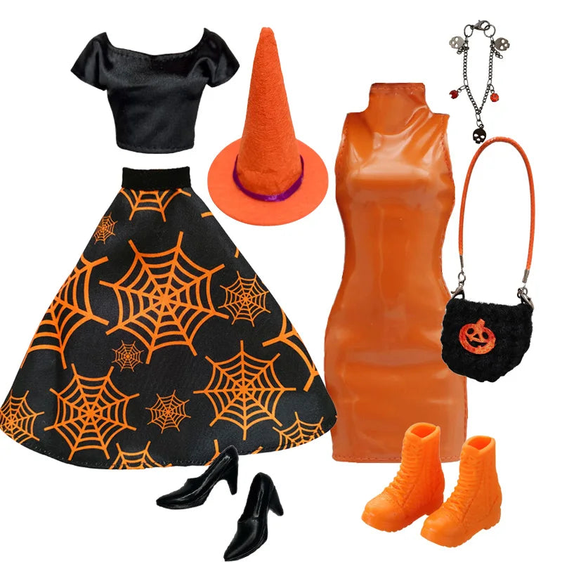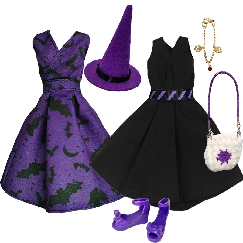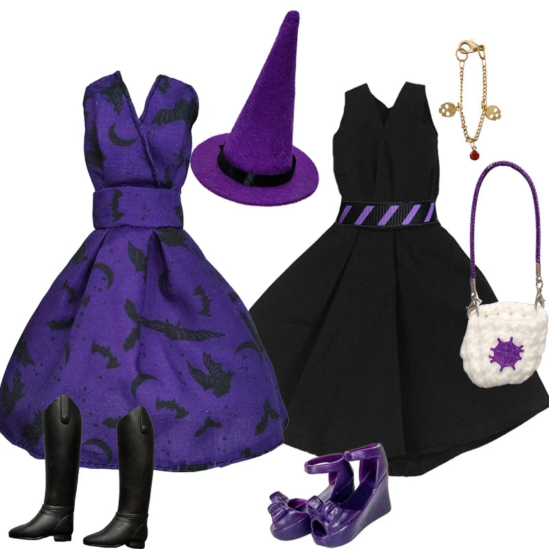 1/6 Doll Cosplay Clothes Halloween dress Witch Cap Belts Bag Broom Outfits for 12inch BJD Doll 30cm Doll Barbi Xinyi FR Doll
