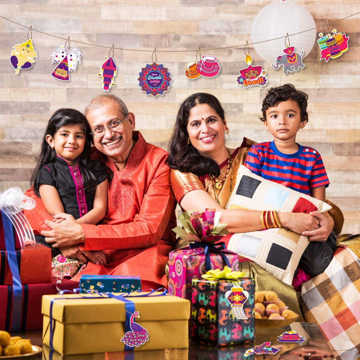 12Pcs/Bag Happy Diwali Theme Paper Tree Pendant Banner Hangers Background for India Diwali Festival Party Decoration
