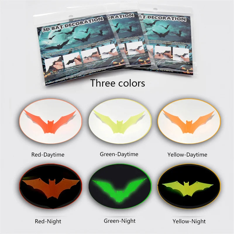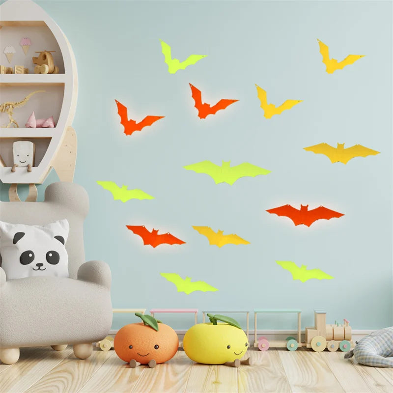 12Pcs/Set 3D Luminous Bat Wall Stickers Halloween Party Decoration PVC Stickers Living Room Window Home Decor Wall Decals Glow