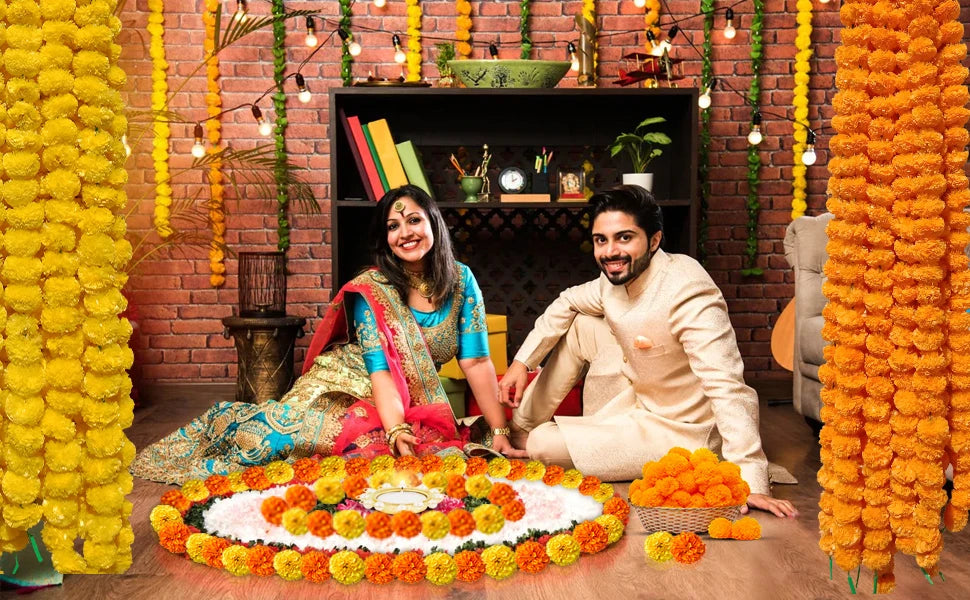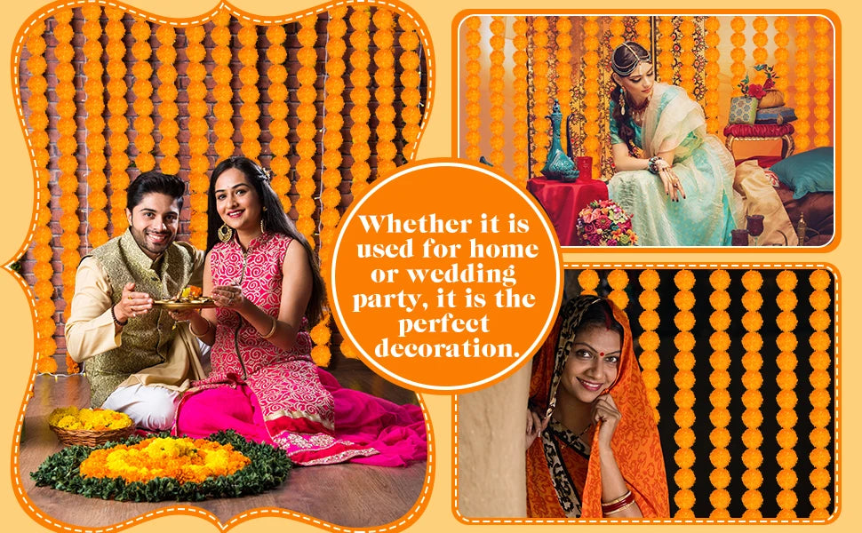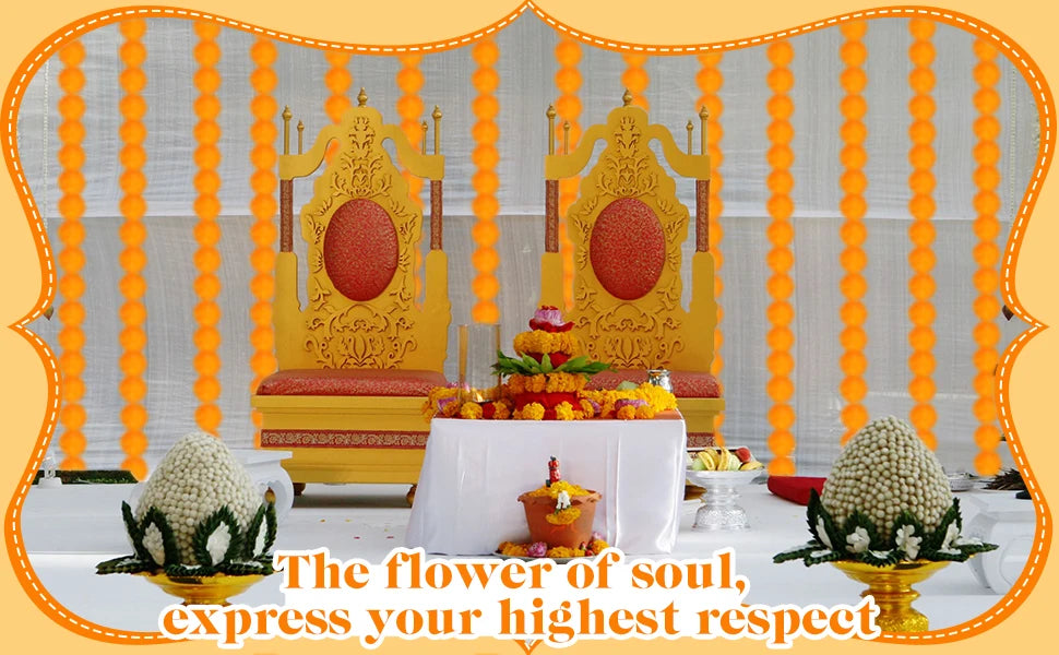 5-50pcs Marigold Flower Garland For Decoration 5 ft Artificial Flowers Mexican Diwali Indian Wedding Party Pooja Day of The Dead