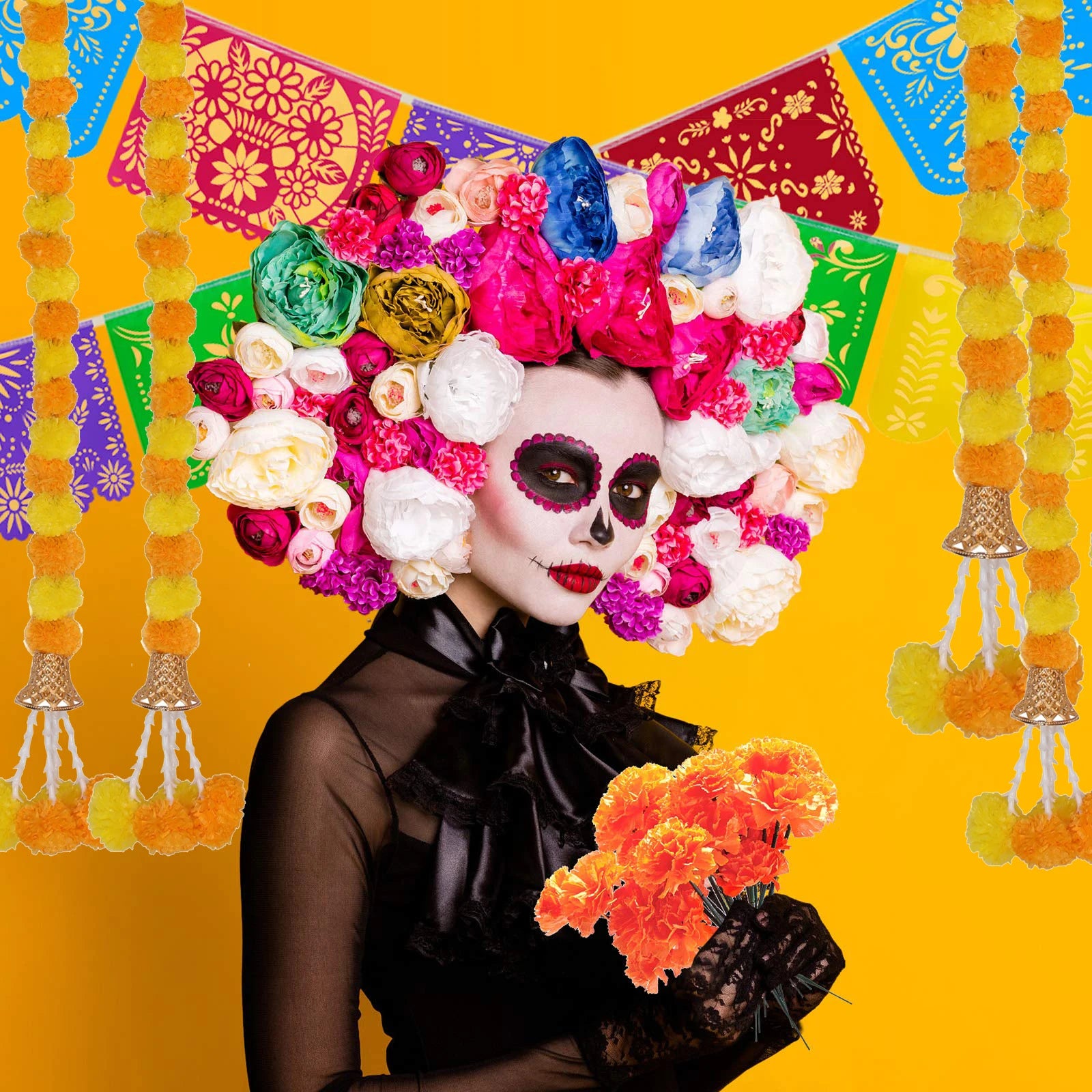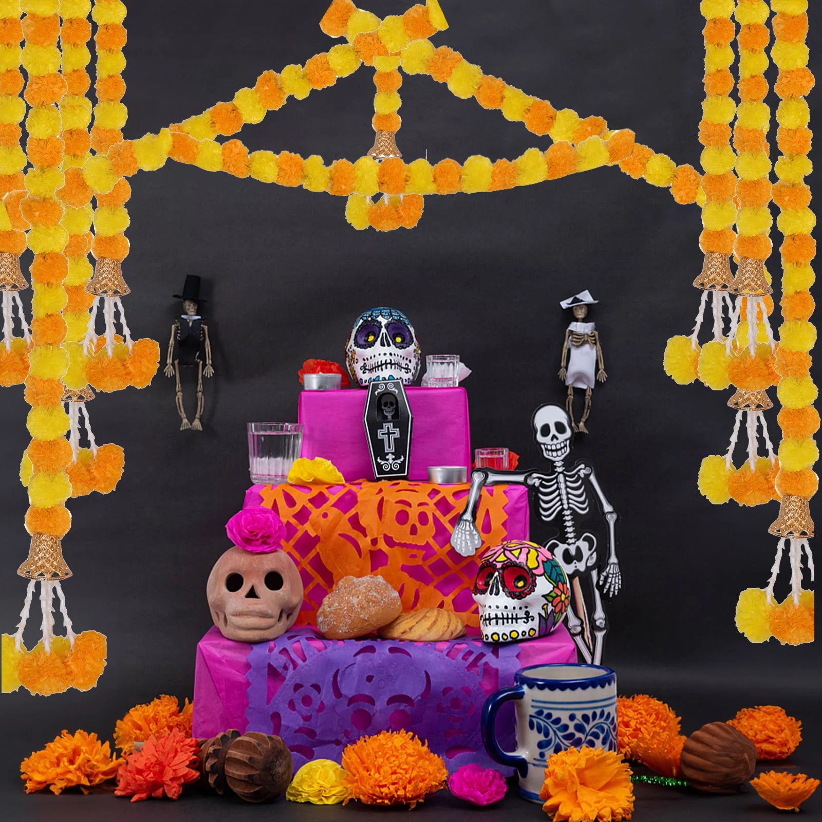 5-50pcs Marigold Flower Garlands 5 Ft Artificial Flower Garland Indian Décor,Pooja, Diwali, Fiesta Day of The Dead, Mexican Par