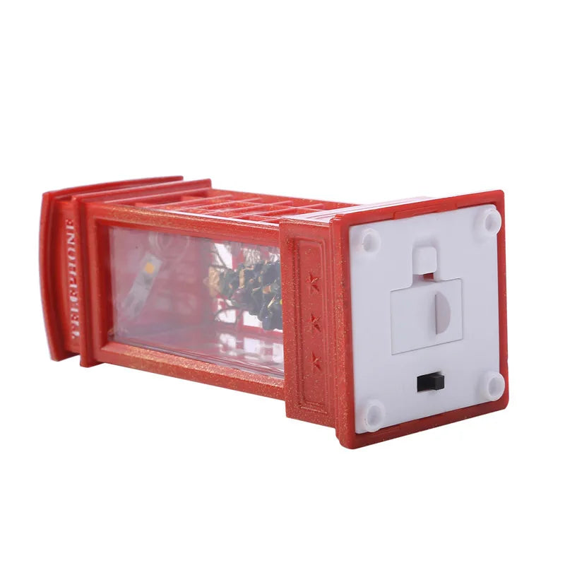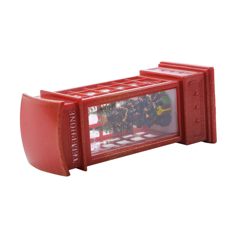 Christmas Decoration Desktop Ornament Luminous Telephone Booth With Snow Globes Spinning Water Swirling Glitter For Home Holiday