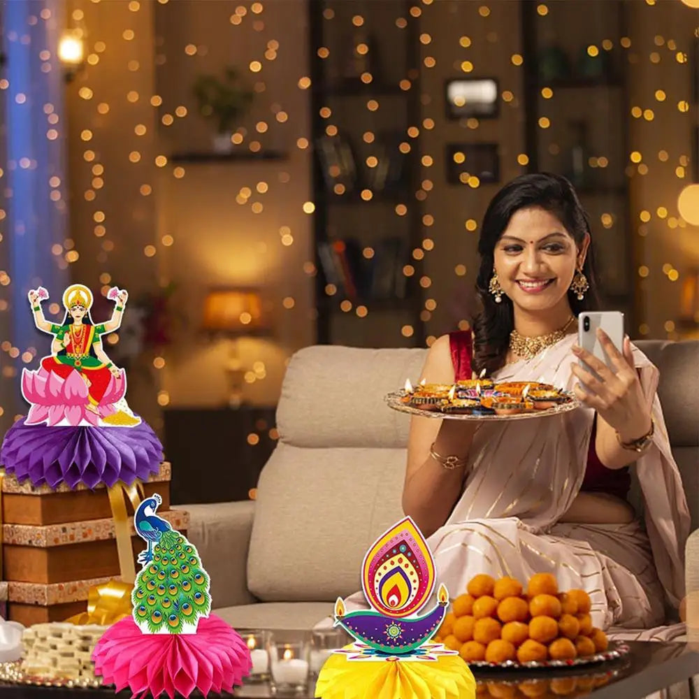 Cutout Decorations for Diwali 9X 3D Paper Crafts Table Topper Double Sided Festive Desktop Ornaments Lights Event Honeycombs for