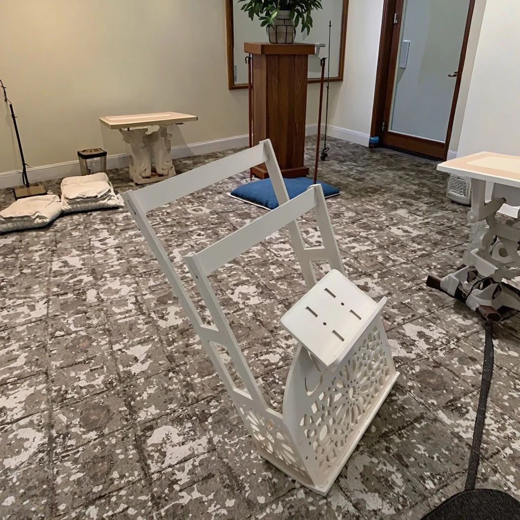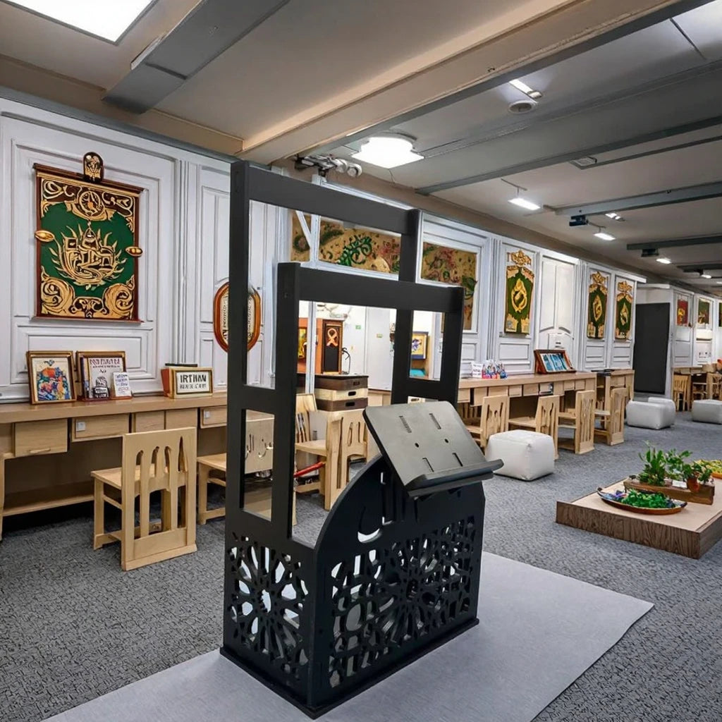 Decorative Wooden Prayer Rack via Shelf with Standing Prayer Mat Installation