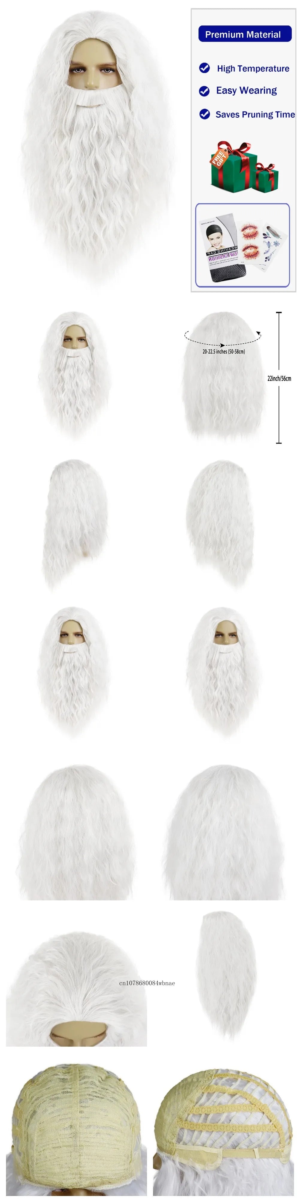 Dumbledore Wigs Synthetic Hair Long Curly Wavy Wizard Grey Wig and Beard for Men Cosplay Accessory Party Halloween Dress Costume