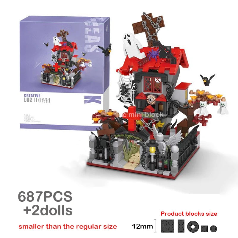 Halloween Toys Building Blocks Assembly Pumpkin House Ghost House Witch Science Monster Friend Party Decor Model Kids Gifts
