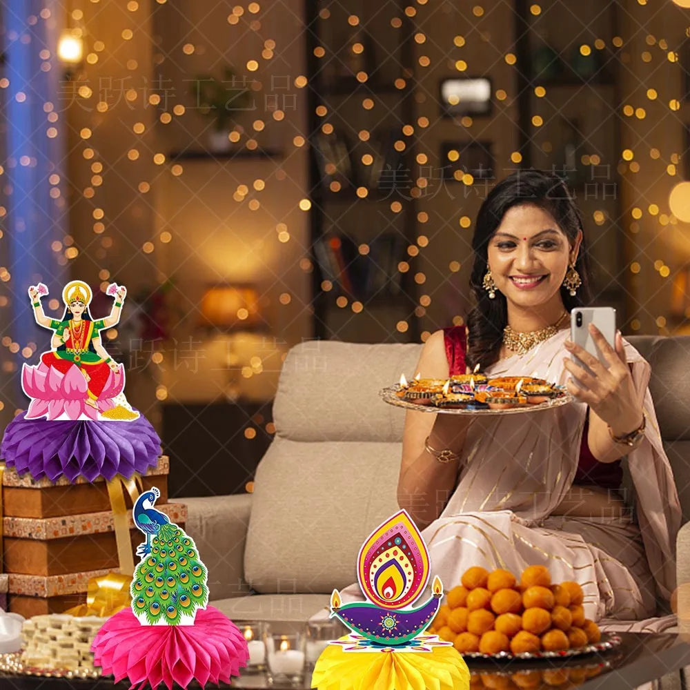 Happy Diwali Party Honeycomb Table Decoration Diwali Elephant Peacock Ornaments Happy Festival of Lights Party Decor