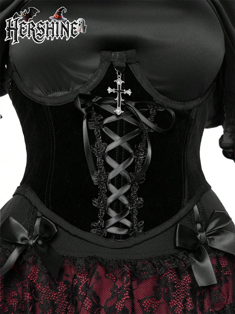HERSHINE 1-piece Women's Black Velvet Fabric Lace Waist Waist Cover Y2K Gothic Dark Halloween Dress Accessories