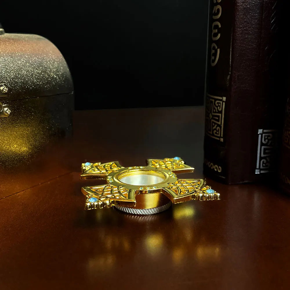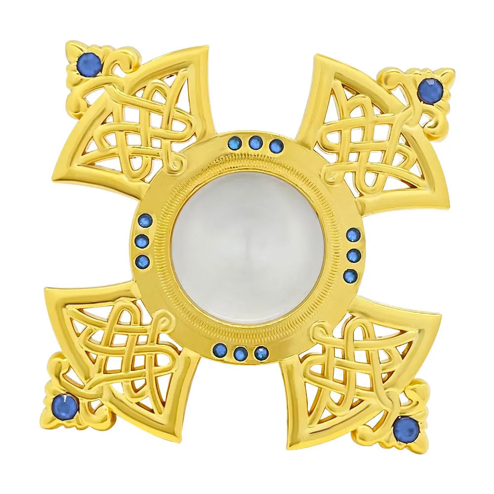 HTISOK Orthodox Holy Water Vessel Gold Plated Alloy with Celtic Cross Church Sanctuary Family Spiritual Space Religious Decor