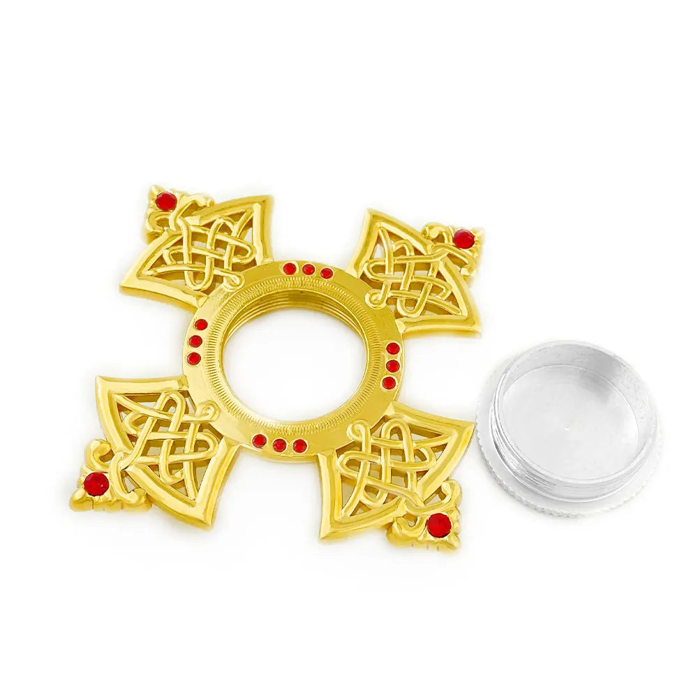 HTISOK Orthodox Holy Water Vessel Gold Plated Alloy with Celtic Cross Church Sanctuary Family Spiritual Space Religious Decor