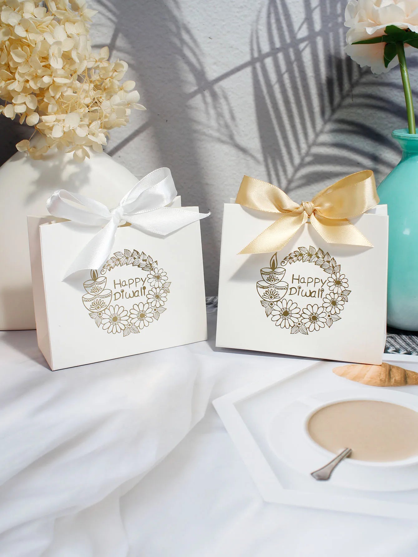Indian Diwali candy box with four styles of ribbons, suitable for festivals, parties, family gatherings, and other occasions