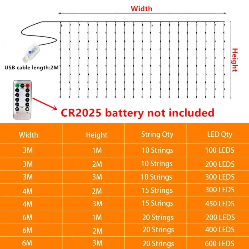 LED Curtain String Light Beautiful Window Ornament USB Powered Indoor Christmas New Year Garland Led Lights Halloween Decoration