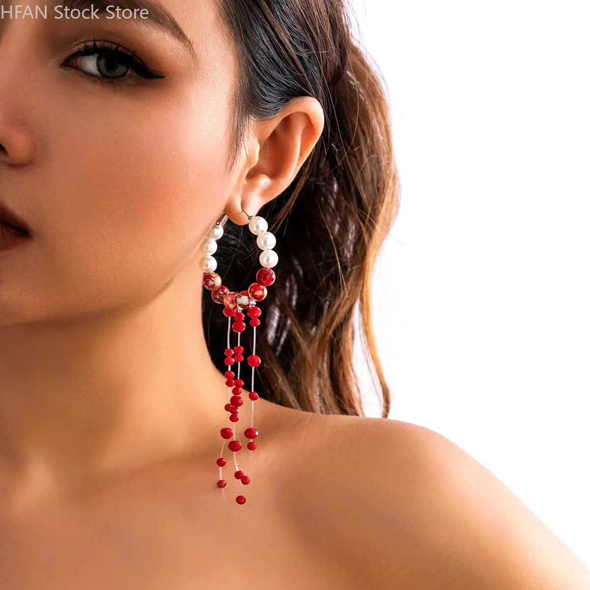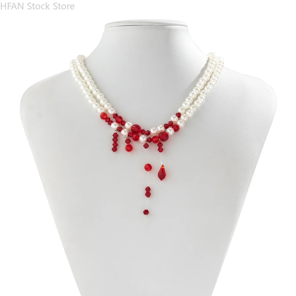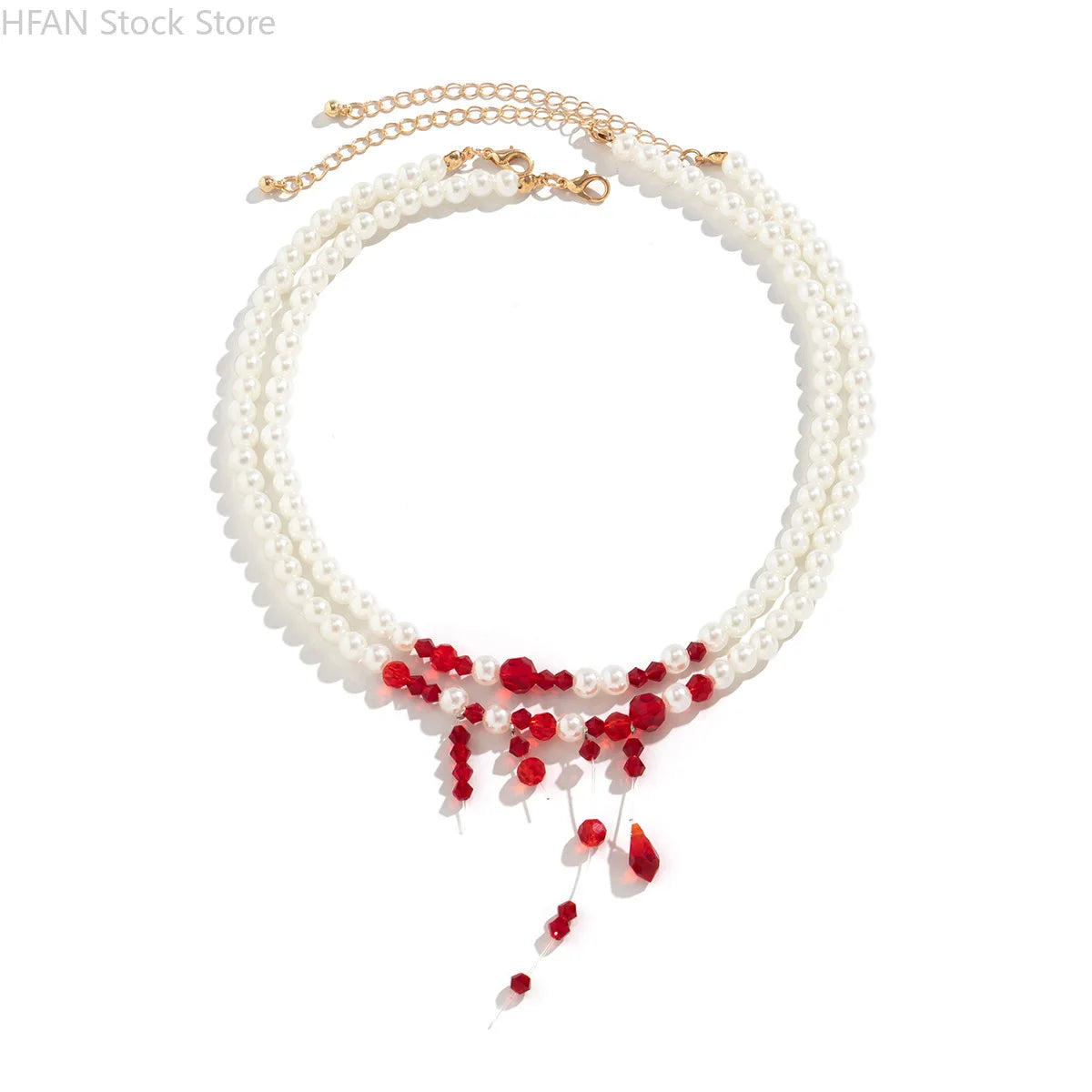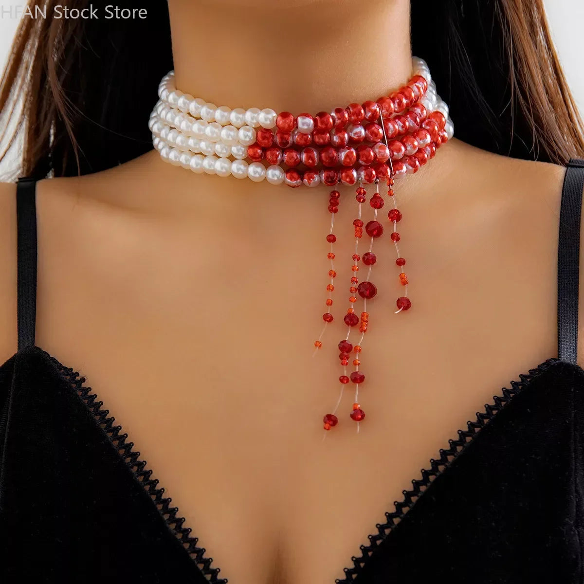 Necklace Dripping Blood Imitation Pearls Womens Necklace Halloween Choker Gothic Style Pearls Creative Tassel Choker Necklace