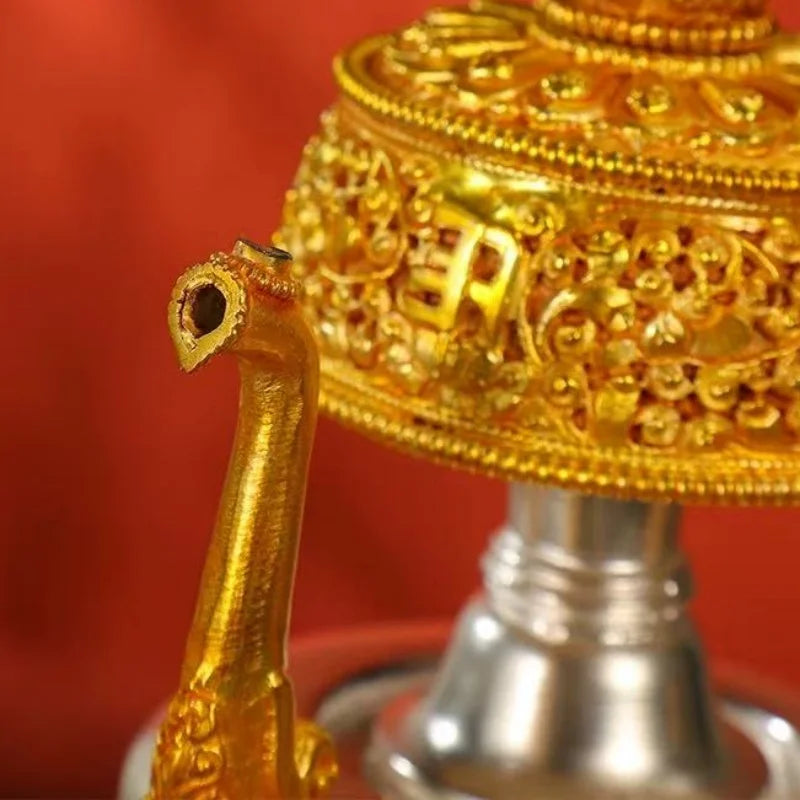 Nepalese Water Purification Bottle Copper,Tantric Holy Water Buddhism Inlaid Gem Pot,Tibetan Altars Kettle Buddhist Religious