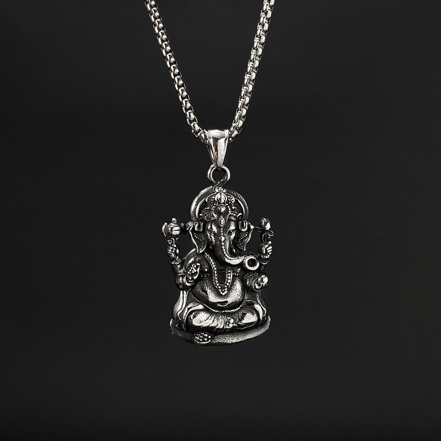 Personalized All-match Retro Elephant God Casting Three-dimensional Pendant Stainless Steel Necklace