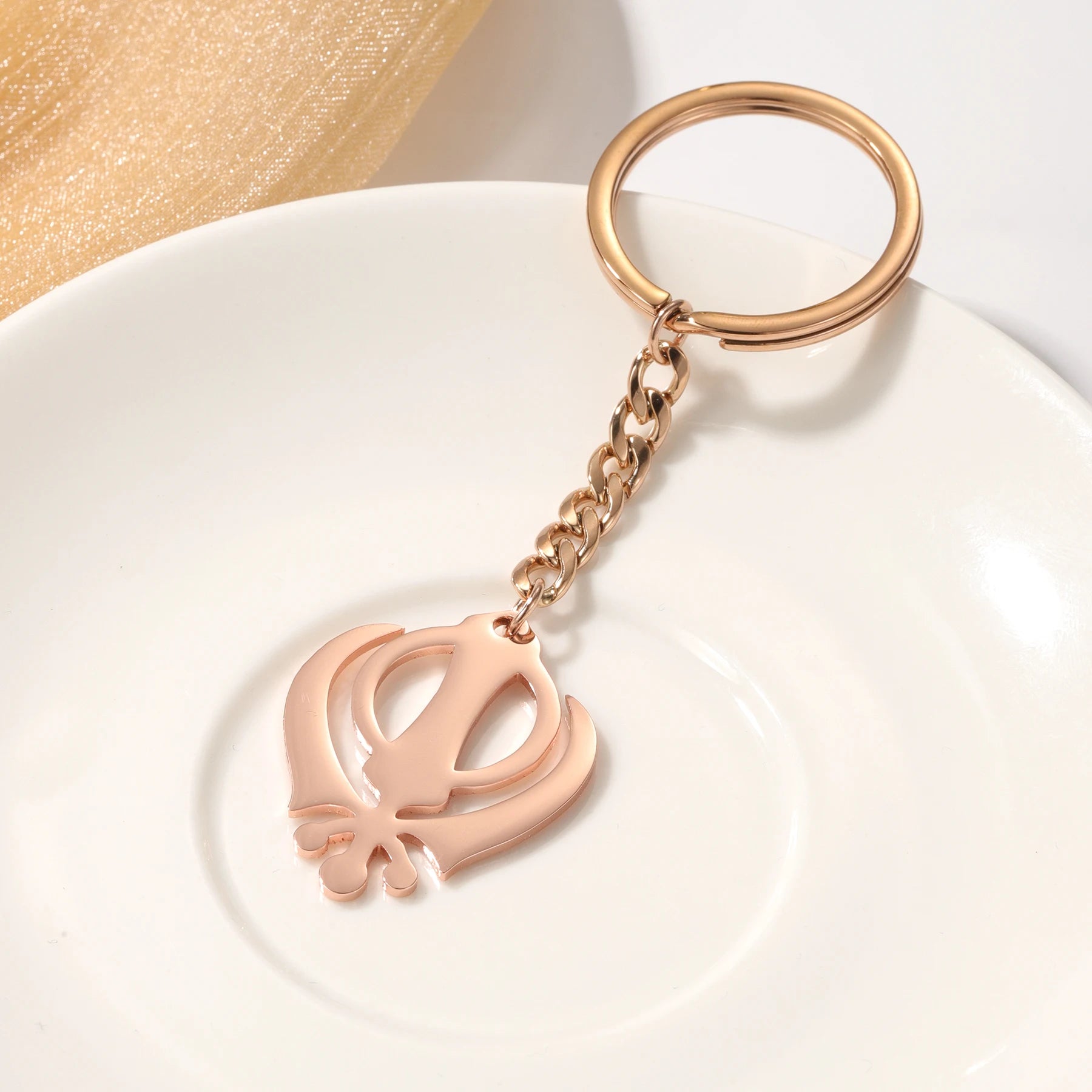 Punjabi Sikh Gold Keychain Pendant Gift 18K Stainless Steel Believer Faith Master Unique Symbol Religious Jewelry Souvenir Gift