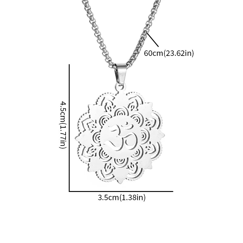 Stainless Steel Indian Religious Mandala Lotus Symbol Necklace Men Women Yoga Om Casual Jewelry