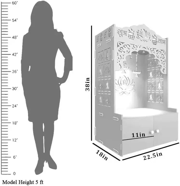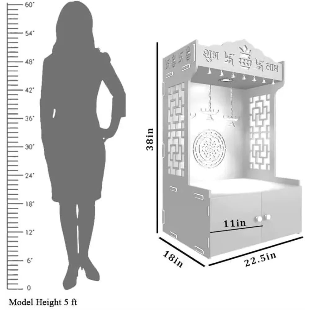 Trading World Wooden Temple Mandir Offers Spacious Built-in Shelf Focusing Lights for Families