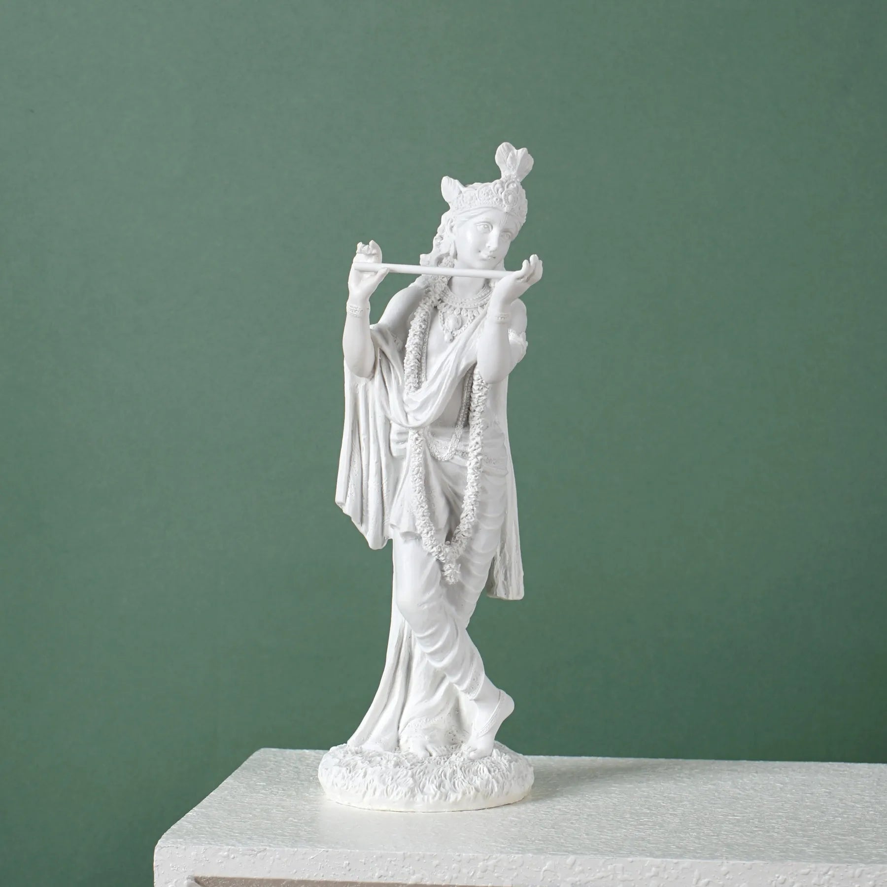 Vilead Resin White Krishna Statue Hindu God Love Divine Sculpture Hinduism Meditating Figurines Home Decoraiton Yoga Room Decor
