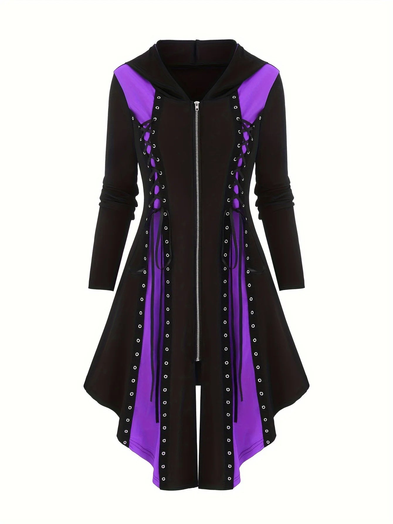 Women Halloween Dress Sexy Irregular Hooded Mini Dresses Lace Up Patchwork Full Sleeve Zipper Vestidos Party Streetwear